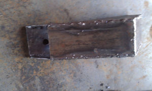 ![]() ![]() ![]() * 2 et 3- Tôle ep 2 mm ![]() * 5- 10 cm x 6 cm * 6- 11 cm x 6 cm * 7- 5 cm x 6 cm *Assemblage des pièces à la soudure à l'arc, baguette 2.5 rutile. *Commencer par le fer plat, percage diam 11 et soudure sur les 2 supports. *Puuis souder un renfort en U sur le fer plat coté intérieur. ![]() ![]() ![]() ![]() ![]() *Attention souder le boulon en biais. Meuler la tête. ![]() ![]() ![]() ![]() *Souder une double epaisseur de tôle *Percer plusieurs trous diam 11 au centre de la pièce. Limer pour ajuster le passage du boulon. ![]() ![]() ![]() *Assembler les 2 pièces.